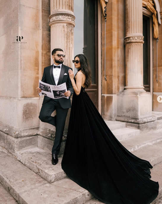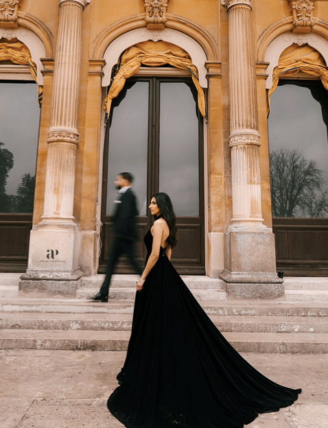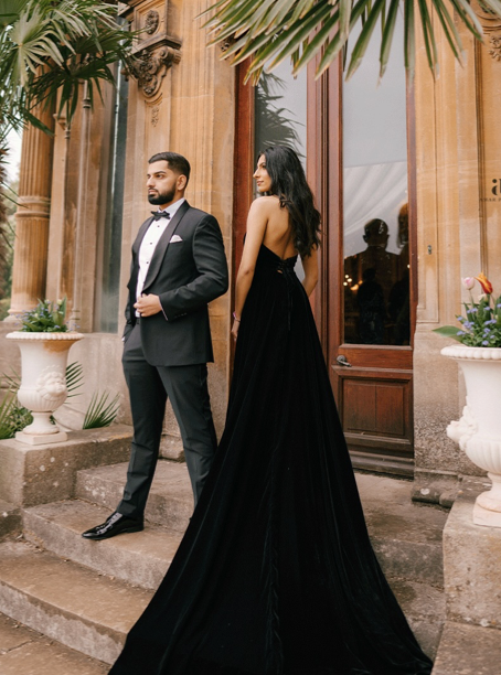 A Stunning Black Velvet gown from our opulent velvet collection. For this small collection, We teamed up with Shenena Sethi to bring together two words showing both collaboration and craftsmanship. The pieces are carefully designed by us and brought to life by the talented Shenena & her team - From the sketches to the final product- This piece Is a labour of love.
