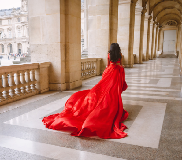 All of our rental dresses are made in standard sizes & have a lace up corset back so they can be adjusted for a better fit. Please contact us if you require help with measurements & fit.