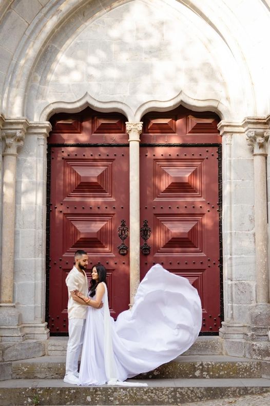 White Flying Dress with Detachable Shoulder Drapes - Medium Trail